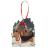 Our Holiday Cabin in the woods is a charming mountain cabin featuring a wreath above the door. Hand painted, original wooden cut-out with red ribbon and a bow. 3.75" x 4.5"
